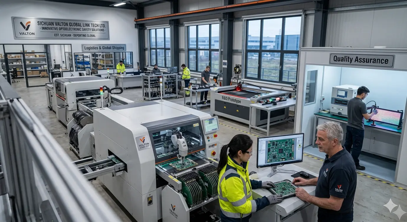 Founded in the high-tech hub of Sichuan, Sichuan Valton Global Link Tech Ltd. is a professional manufacturer and exporter specializing in high-performance optoelectronic safety products. While we are a dynamic new face in the corporate world, our core team brings over 20 years of international trade experience in the optoelectronics industry, ensuring a deep understanding of global standards and client expectations.