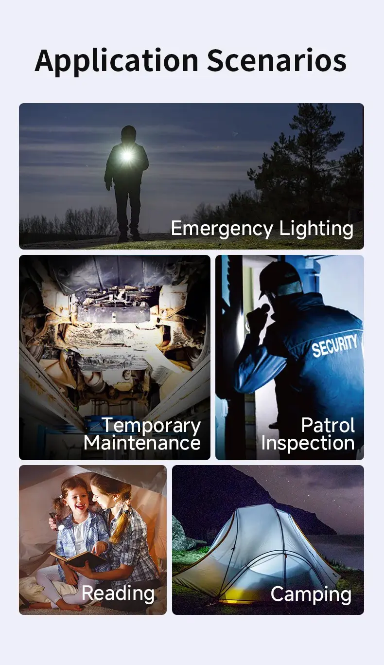 | Color Temperature | 8200K (Cool White) | Light Modes | Low, Medium, High, Strobe, SOS |