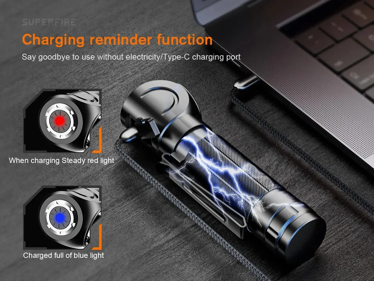 | Package Contents | 1x SUPERFIRE TH04/TH04-S Flashlight 1x 18650 Li-ion Battery (2000mAh for TH04, 3400mAh for TH04-S) 1x Type-C Charging Cable 1x Adjustable Headband 1x Headlamp Bracket (TH04-S only) 1x User Manual 1x Retail Box |