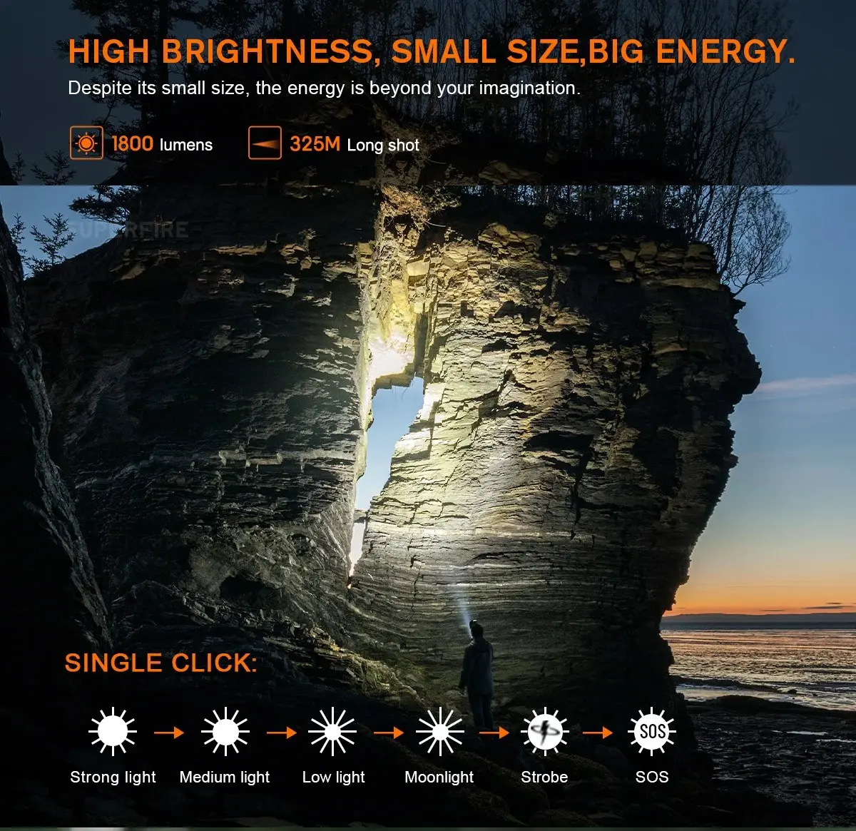 High / Medium / Low / Moonlight / Strobe / SOS |