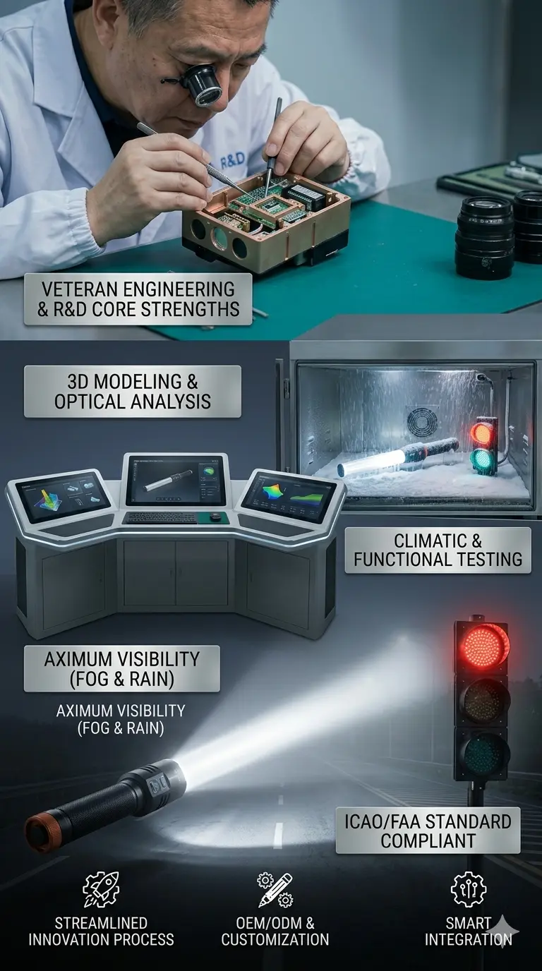 Cutting-Edge Optical Design: We specialize in maximizing LED efficiency and light refraction patterns, ensuring our Aviation Marshalling Wands and Traffic Warning Lights provide maximum visibility even in the most extreme weather conditions (heavy fog, rain, or snow).