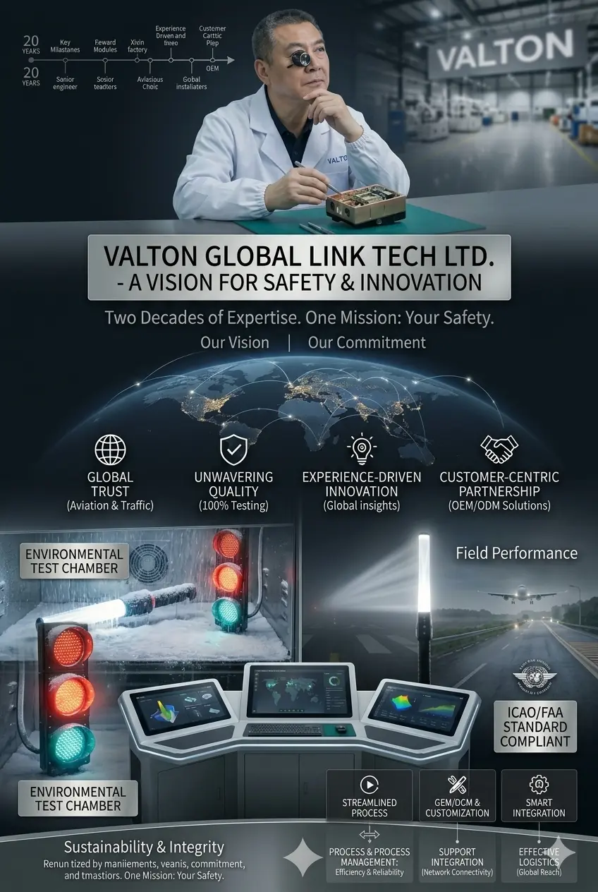 At Sichuan Valton Global Link Tech Ltd., we don’t just manufacture; we innovate. Our R&D capability is anchored by a veteran team with 20 years of deep-rooted expertise in optoelectronic technology, ensuring that every airport wand and warning light we produce is at the forefront of safety and efficiency.